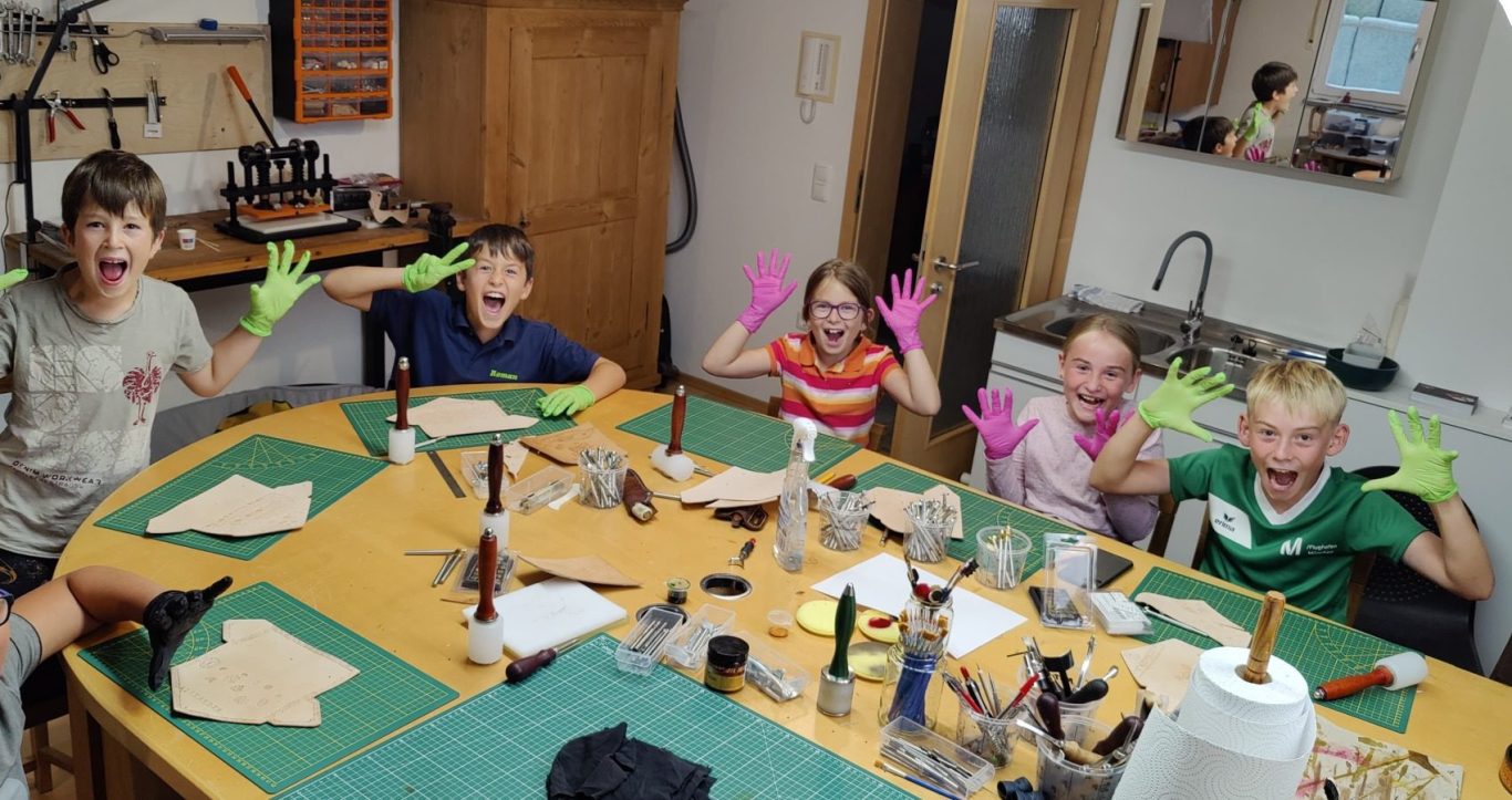 Lederhandwerk selbst erleben: In meinen Workshops entstehen Schlüsselanhänger, Gürtel oder Messerscheiden – und jede Menge stolze Gesichter. Geeignet für Kinder, Erwachsene und Gruppen.