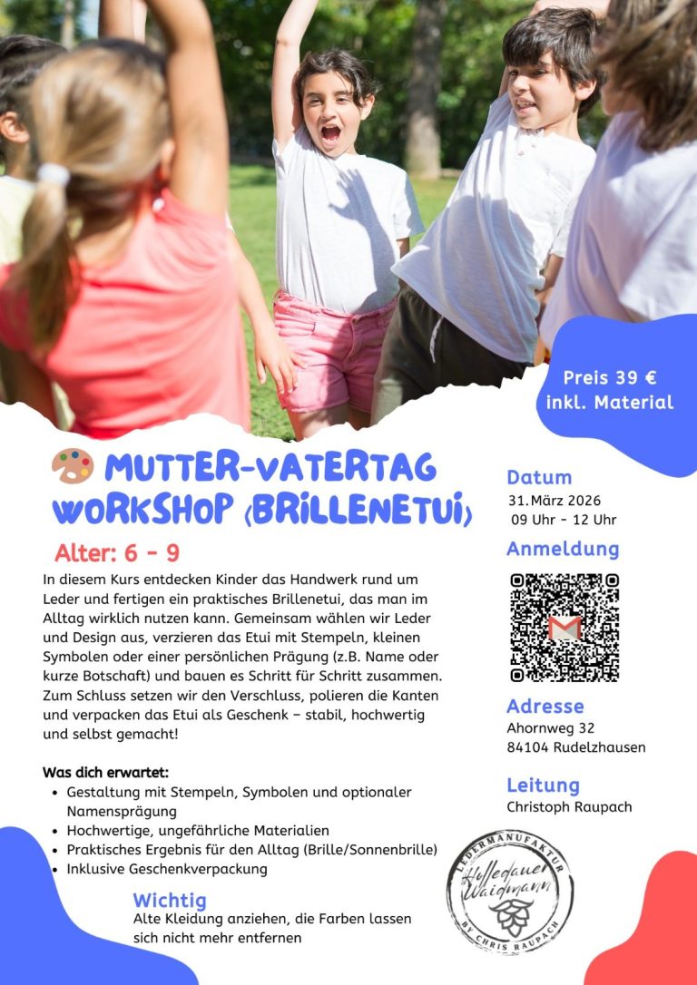 In den Osterferien finden zwei verschiedene Workshops für Kinder statt. Am 31.03. wird in zwei Gruppen ein Brillenetui gebaut und am 07.04. ebenfalls in zwei Gruppen eine Deko- /Schmuckschale.