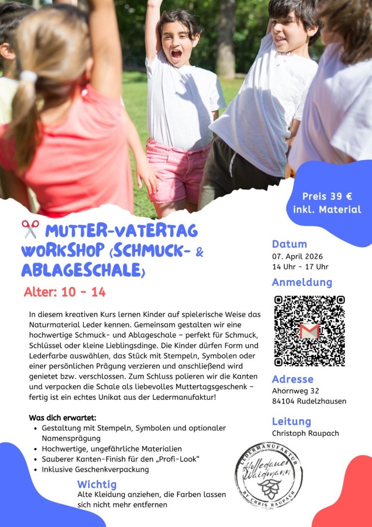 Leder riechen, fühlen, bearbeiten – in meinen Workshops wird Handwerk lebendig. Ob Kinder, Erwachsene oder Gruppen: Jeder kann bei mir das traditionelle Lederhandwerk entdecken und sein eigenes Unikat herstellen. Vom einfachen Schlüsselanhänger bis zur maßgeschneiderten Messerscheide – Schritt für Schritt zeige ich dir, wie aus einem Stück Leder etwas Einzigartiges entsteht.